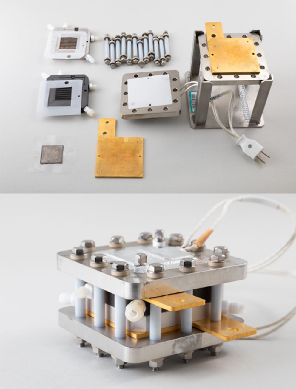 These are image of a proton-exchange membrane (PEM) reactor. Although the experiments in the study did not use this reactor, this is the final goal in terms of industrial application. Photos © Makoto Oikawa