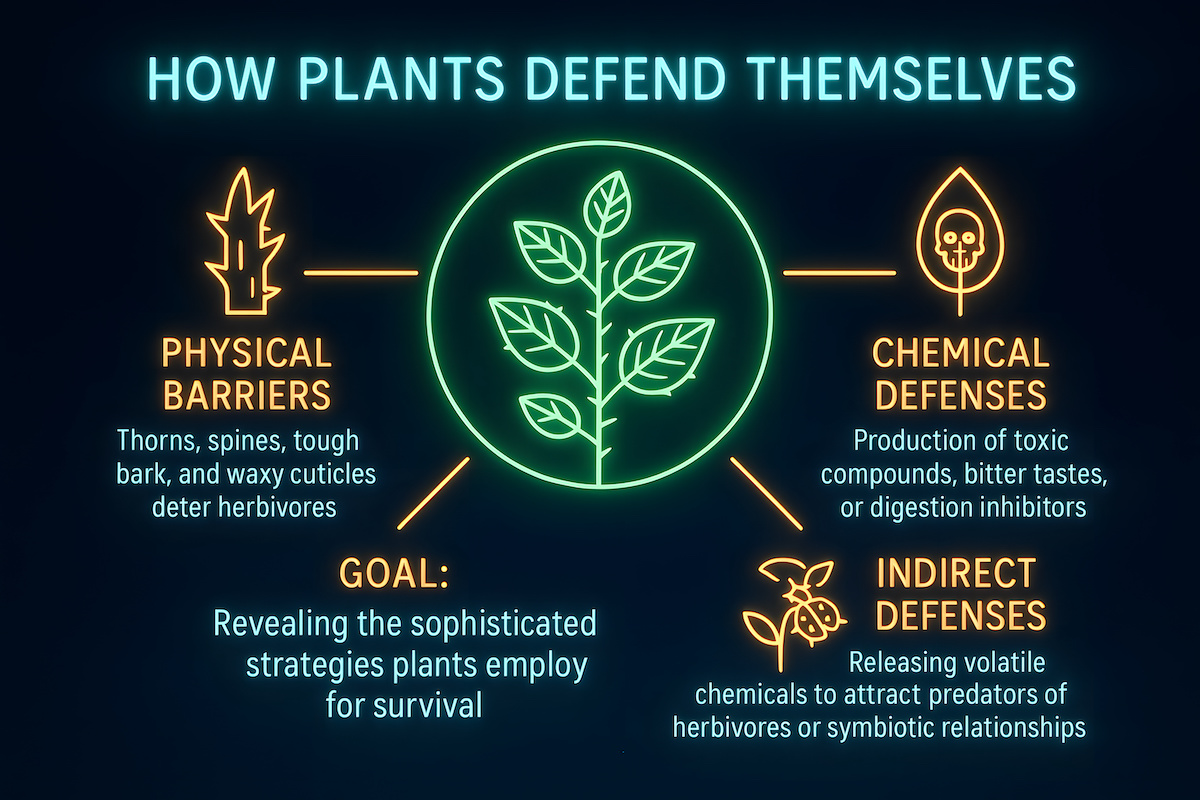Plants have several ways to defend themselves. Not mentioned in this image is their immune system! The newly discovered immune receptor SCORE can recognize cold-shock protein, which is found in the majority of bacteria, and trigger an immune reaction.